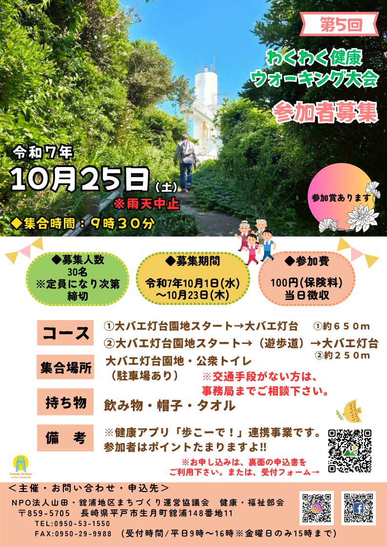 ダウンロードはこちら→ R7.10.25 第5回わくわく健康ウォーキングチラシ.pdf (8.31MB)