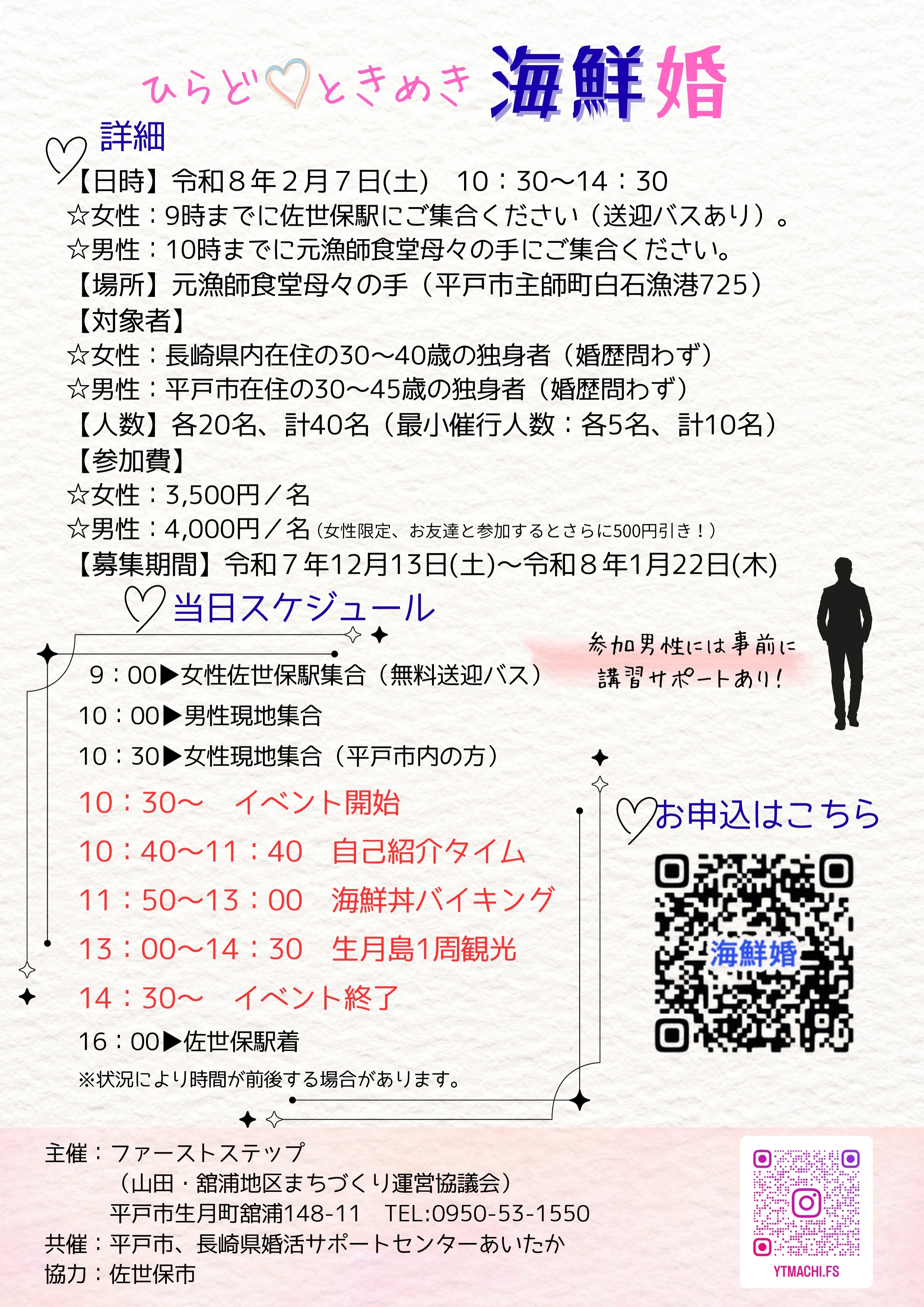 男性:平戸市在住の30〜45歳の独身者(婚歴不問)